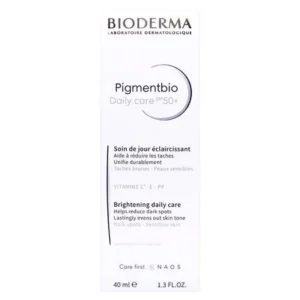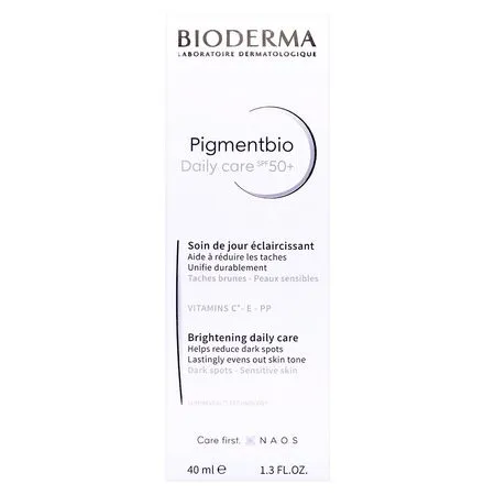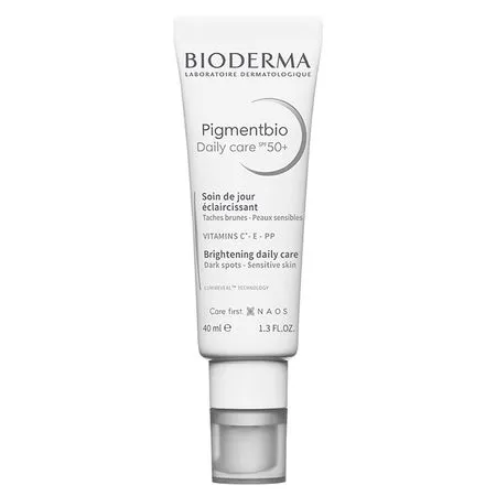 Creme Facial Bioderma Pigmentbio Daily Care 50+ Marcas escurecidas são reflexo de nosso estilo de vida: poluição, exposição excessiva ao sol, idade, gravidez, irritações. Elas são causadas pela superprodução de melanina, que modifica nossa tonalidade original. Portanto, é necessário um cuidado que aja dede as causas até as consequências para devolver à pele sua tonalidade e luminosidade originais. A fórmula inédita de Pigmentbio Daily Care FPS 50+ traz a patente Lumireveal TechnologyTM, que age em todo o processo biológico da hiperpigmentação para inibi-la desde sua formação, regulando a produção de melanina, até a eliminação das marcas já existentes através de uma intensa renovação celular. Pigmentbio Daily Care ainda conta com ação antioxidante e hidratante para prevenir o envelhecimento precoce e fortalecer a barreira de proteção da pele, graças à combinação de vitaminas C, E e niacinamida. Os filtros anti UVA/UVB atuam em sinergia para aumentar sua ação clareadora, prevenir a formação de novas marcas e proteger a pele do envelhecimento precoce. TEXTURA: gel creme com partículas peroladas para um efeito iluminador imediato. Adaptado para todos os tipos de pele. RESULTADOS: em 8 semanas, pele 51% mais uniforme¹; em 3 meses, pele 91% iluminada. MODO DE USO: Aplicar de manhã no rosto, pescoço e colo após a limpeza com Pigmentbio H2O ou Pigmentbio Foaming Cream e o cuidado clareador diário, como Pigmentbio C Concentrate. Excelente base de maquiagem.