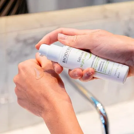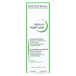 Sébium Night Peel, sérum concentrado renovador para pele oleosa e acneica é o cuidado anti-idade para peles oleosas e acneicas com alta concentração de ácido glicólico para melhorar a textura e luminosidade da pele e prevenir a formação da acne, equilibrando eficácia e tolerância. Altamente concentrado em ácido glicólico, Sébium Night Peel acelera a renovação celular e melhora o relevo da pele, revelando luminosidade, melhorando a textura e controla a oleosidade da pele. A Patente Fluidactiv previne a oxidação do sebo que leva à formação da acne e das marcas de acne. O ativo D. Panthenol acalma, hidrata e repara a barreira. Sébium Night Peel suaviza a textura da pele, reduz a aparência de marcas, controla a oleosidade e revela o seu brilho. Não comedogênico. Sua textura sérum garante uma rápida absorção. Alta tolerância. Testado sob controle dermatológico. Modo de usar: Aplique todas as noites, por um mês. Lavar o rosto pela manhã. Fazer uma pausa de um mês entre usos.